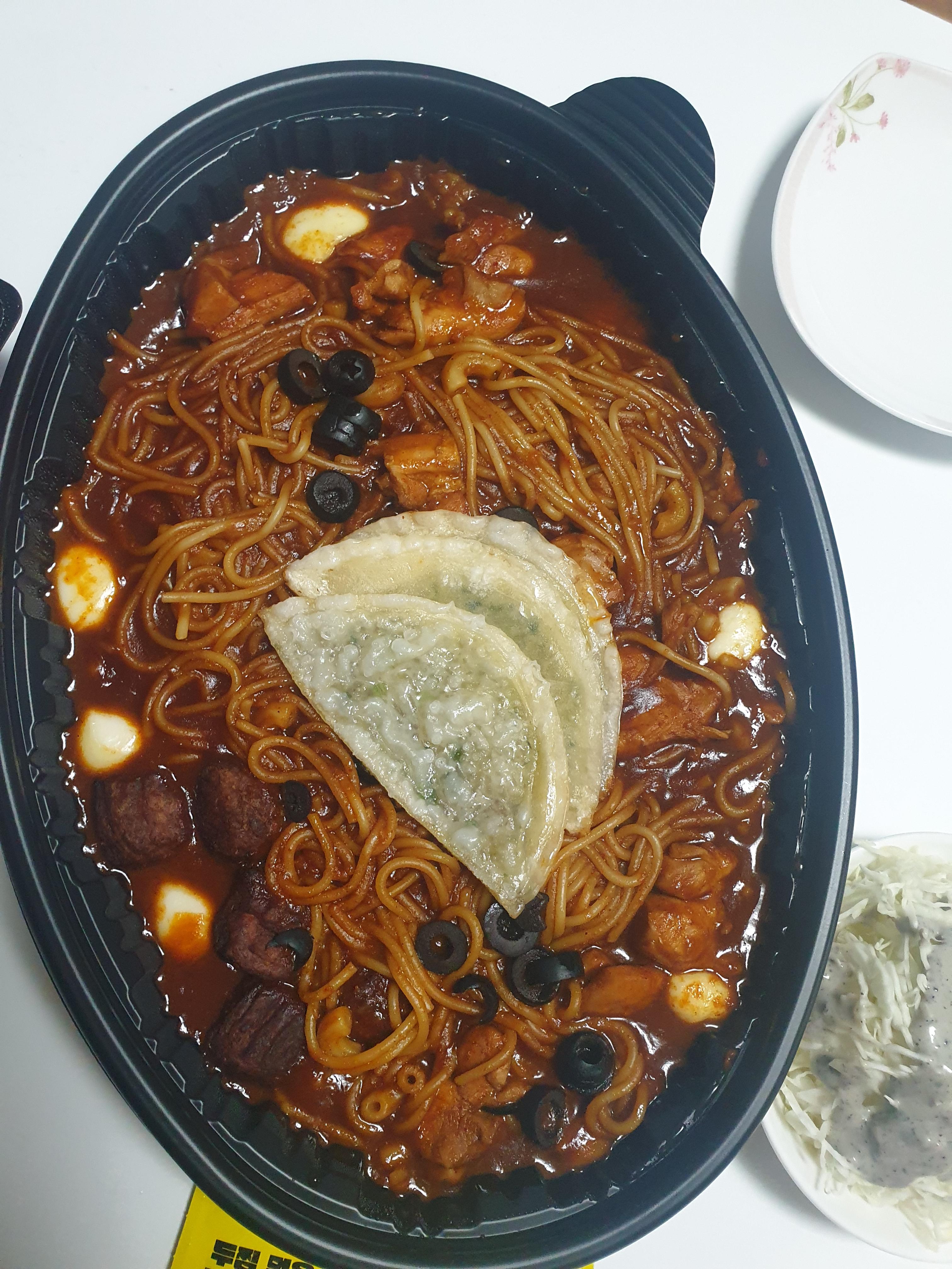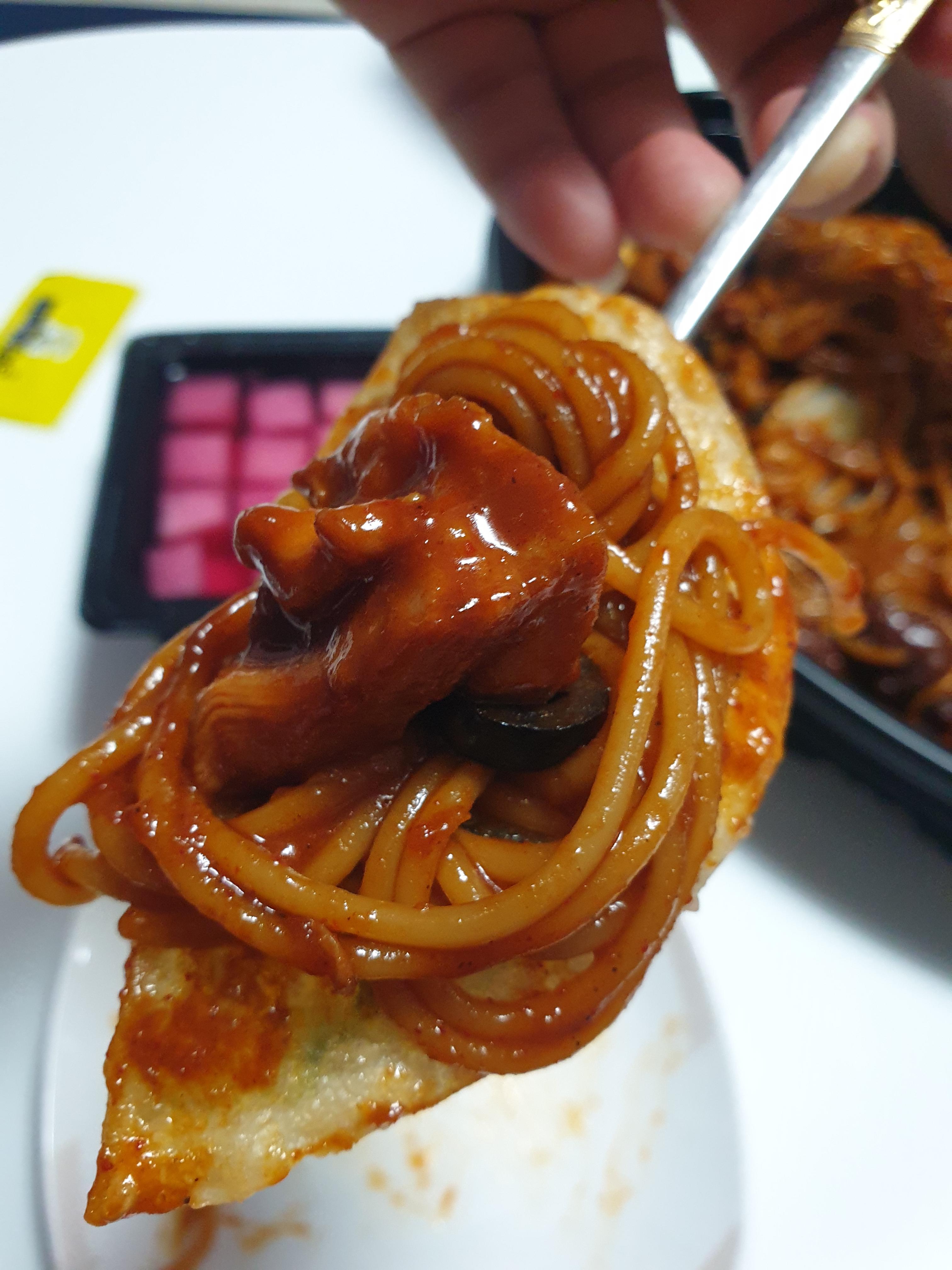 저는 납작만두에 스파게티올리고~ 순살 하나올리고~