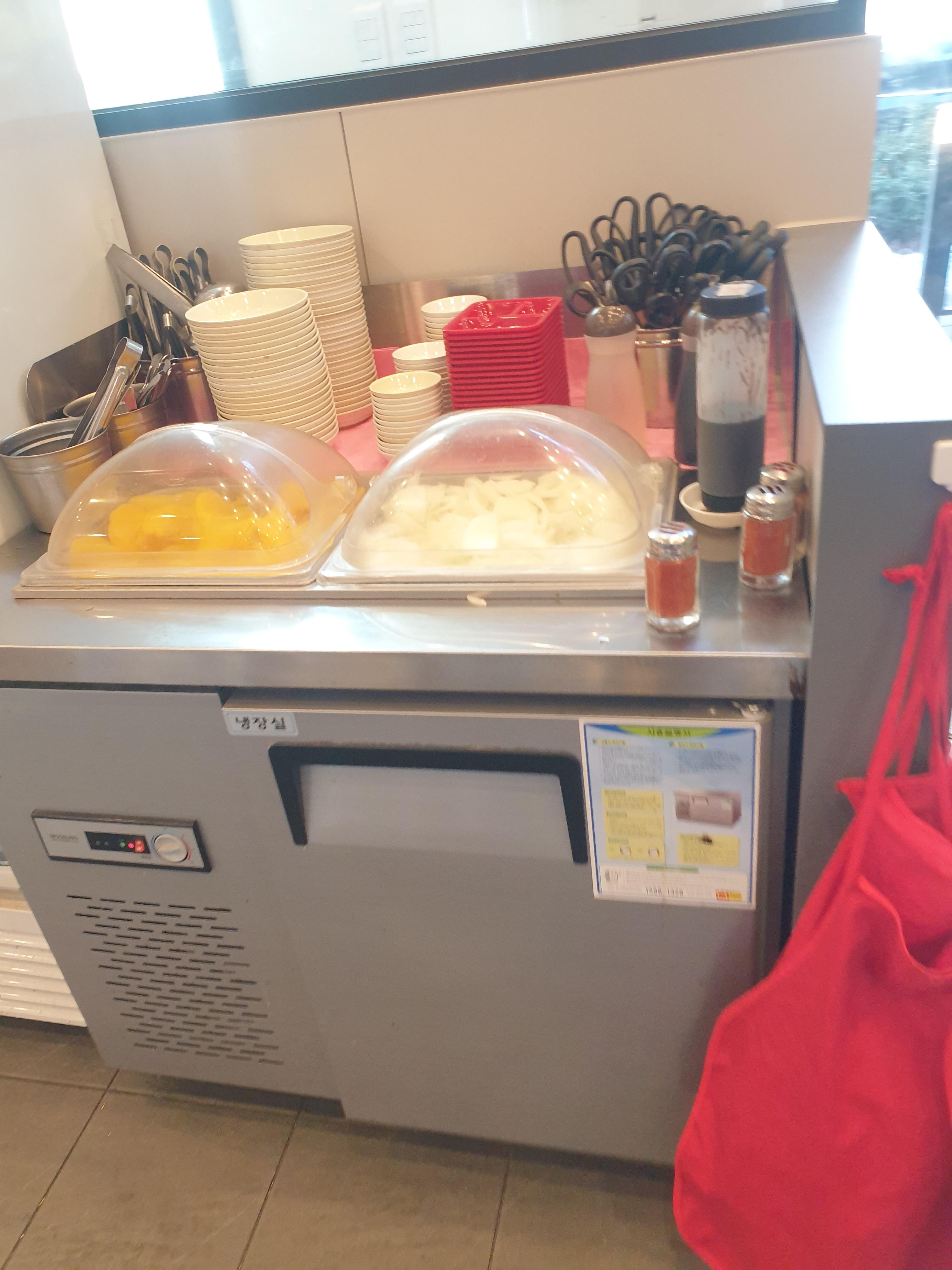 셀프코너에 앞치마 양파소스,고춧가루, 가위 등등 필요한건 다있어서 가져다쓰고 단무지도 많이 먹을수있고 좋았어요