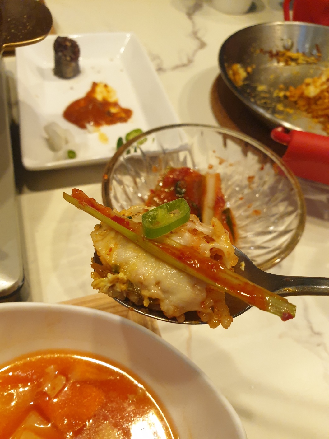파김치가 느끼한 곱을 깔끔하게 해주었어요